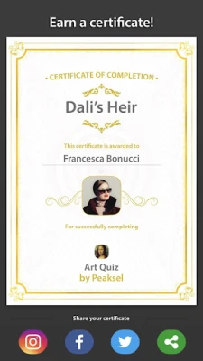 Kvizovi su fantastičan način da se provede kvalitetno vreme, a istovremeno se uči i otkrivaju nove zanimljivosti. Uz brojna pitanja i odgovore, kao i zabavne činjenice koje prate svaki odgovor, Umetnički Kviz na Srpskom se izdvaja kao lider među aplikacijama u svojoj kategoriji. Za one najistrajnije i najuspešnije, obezbeđen je poseban sertifikat kao priznanje za vaše majstorstvo u umetnosti. Umetnički Kviz na Srpskom, delo tima Quizzes by Peaksel, predstavlja idealan spoj zabave i učenja, pretvarajući svaki slobodan trenutak u priliku za obogaćivanje vašeg kulturnog znanja. Slike korišćene u aplikaciji su pažljivo odabrane i pod Public Domain ili Creative Commons licencom, što obezbeđuje bogat i legalan vizuelni sadržaj za vaše uživanje.